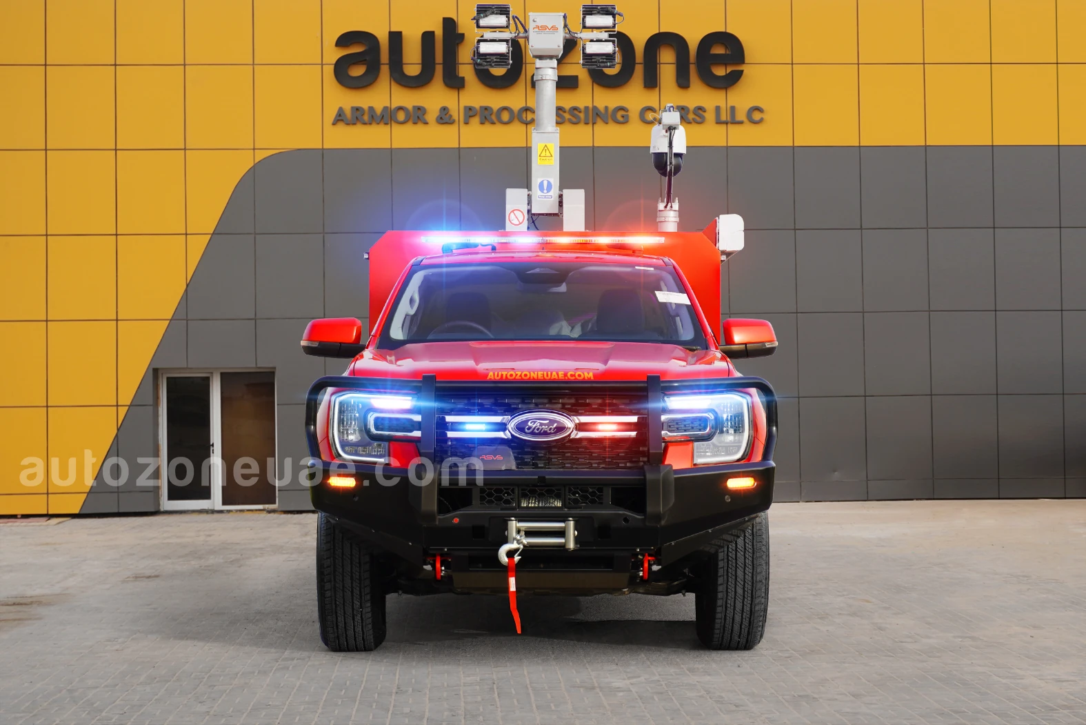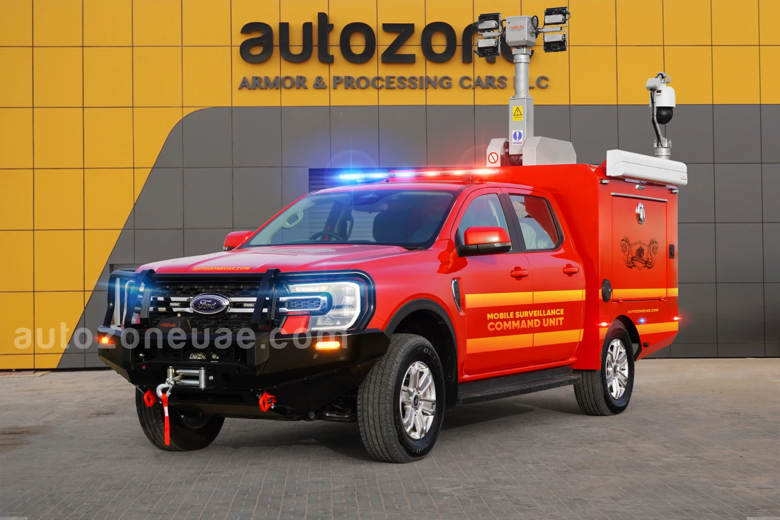 While this specific model is a standard soft-skin vehicle, AutoZone is a vehicle conversion specialist and can discuss armoring options if the command post needs to operate in high-risk zones.